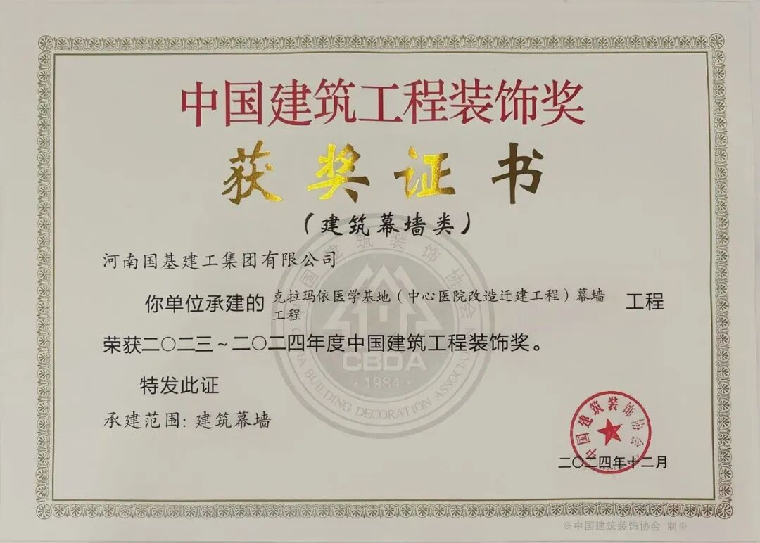 会上中国建筑装饰协会颁发“2023-2024年度中国建筑工程装饰奖”获奖证书及奖杯,国基建工集团再获2项大奖。