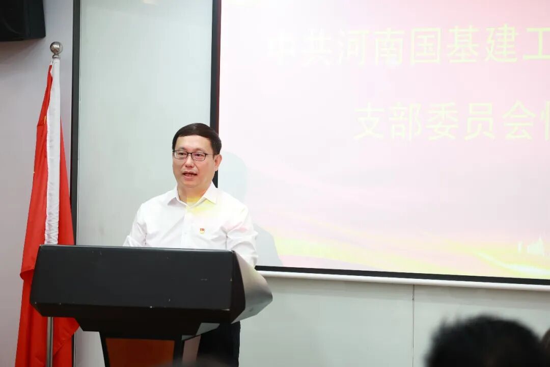 会议议程第二项,董事长付咏首先对各位领导的莅临指导表达热烈的欢迎和诚挚的感谢,随后对国基建工集团及党支部工作情况作了详细介绍。付咏表示,国基建工集团党支部将持续以习近平新时代中国特色社会主义思想为指导,认真贯彻落实党的二十大精神,以党的政治建设为统领,充分发挥党支部战斗堡垒作用,紧紧围绕生产经营目标,深度融入生产经营,推动公司业务稳中有进、健康发展。不断提升自身素质和工作能力,以实际行动践行入党初心,充分发挥党员先锋模范作用,立足本职工作,增强使命和担当,积极为行业发展和经济繁荣奉献力量。