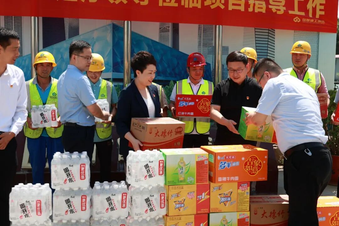 河南省住房保障和房地产业发展中心主任吴小红带队对国基建工集团郑州银行金融服务中心项目部一线施工人员进行慰问。详细询问了工人们在高温天气下的工作及生活情况,对他们在高温下坚守岗位、忠于职守的精神表示赞扬,并叮嘱他们在夏季高温作业时一定要保重身体、注意安全。希望项目部要把工人们的身体健康放在首位,把防暑降温工作做到位,落实好高温天气作业的相关保障措施。