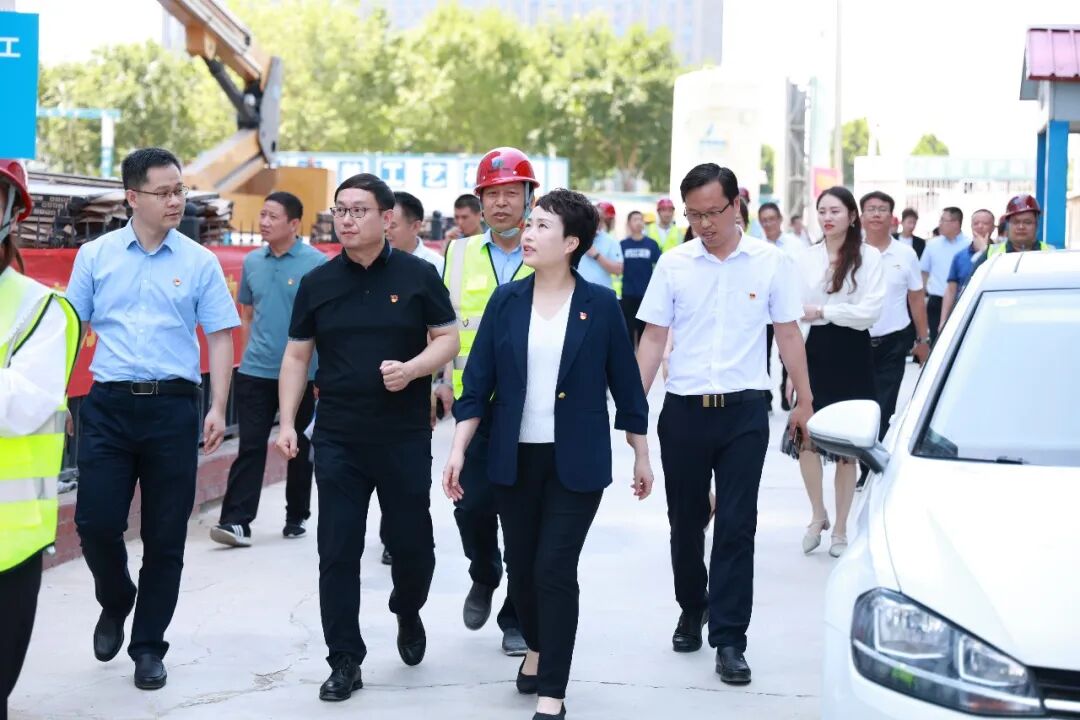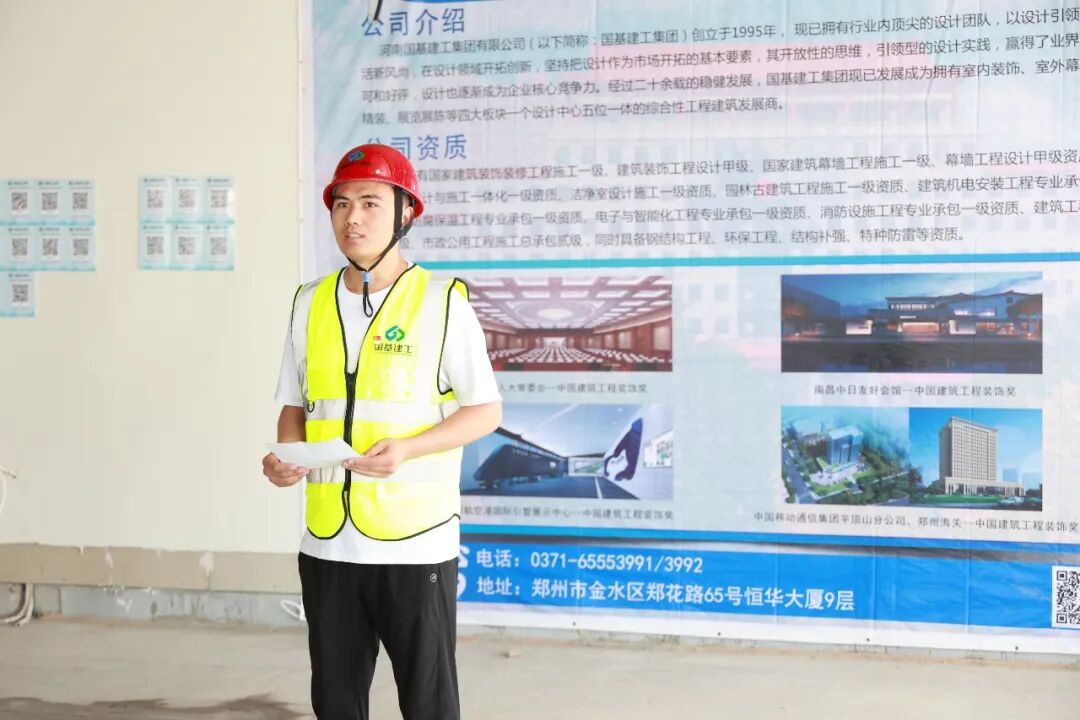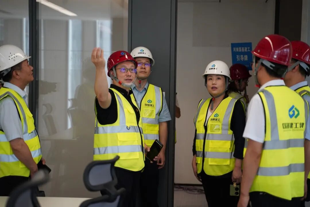 6月30号上午11时,河南省住建厅机关党委专职副书记杨亮、河南省住房保障和房地产业发展中心主任吴小红、河南省住房保障和房地产业发展中心副主任肖家连、河南省住房保障和房地产业发展中心副主任张长青、河南省住房保障和房地产业发展中心办公室主任张珊、河南省住房保障和房地产业发展中心全体人员,金水区绩效考核工作办公室主任周丹、国基路街道党工委副书记、主任田波、国基路街道党建指导员常原平、国基建工集团董事长付咏、党支部书记梁兴家等人走进郑州银行金融服务中心项目进行现场观摩指导。实地查看项目进展情况,现场协调解决项目建设中存在的困难和问题。